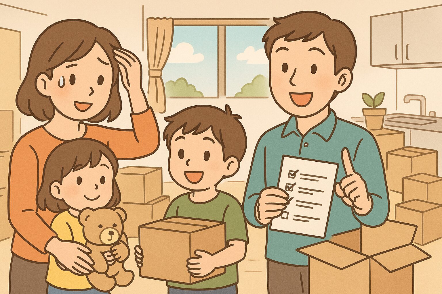 年齢別のひと工夫も効果的。未就学児なら「お片づけ絵本」を1冊入れておけば、荷ほどき中の待ち時間も穏やか。小学生なら折り紙や色鉛筆をセットして“新しいおうちの地図”を一緒に描くと、探検のワクワクに変わります。
