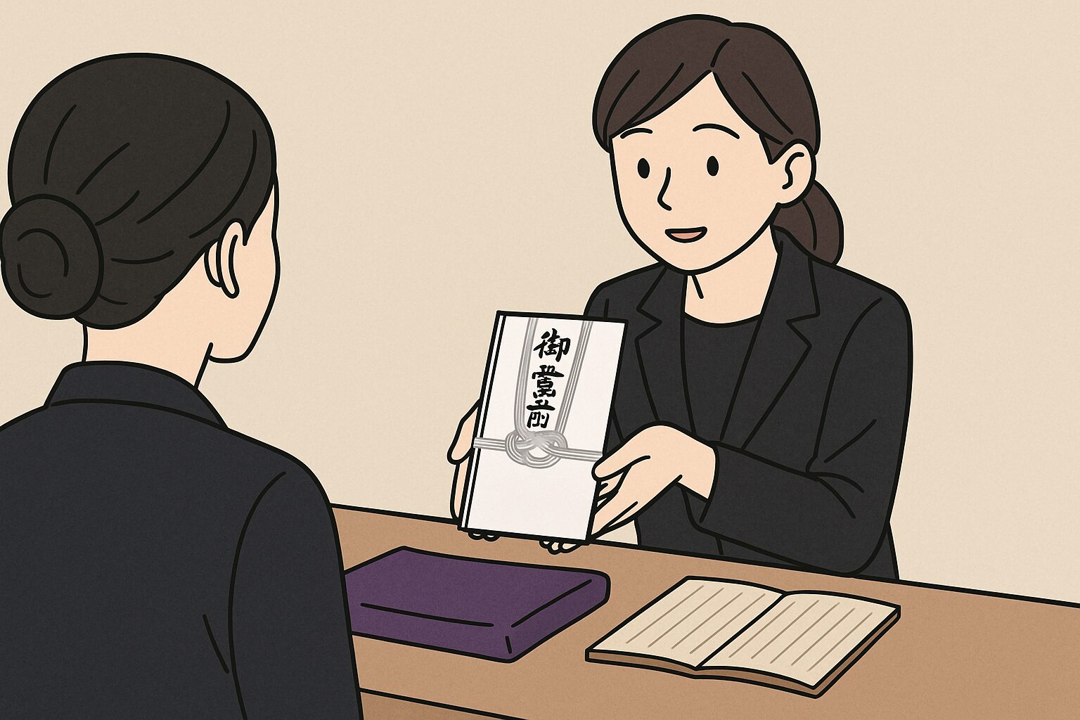 近しい親族で通夜は手伝い、告別式で渡すなど、家の慣習がある場合はそれに合わせます。迷ったら親族や喪主側の指示を優先。